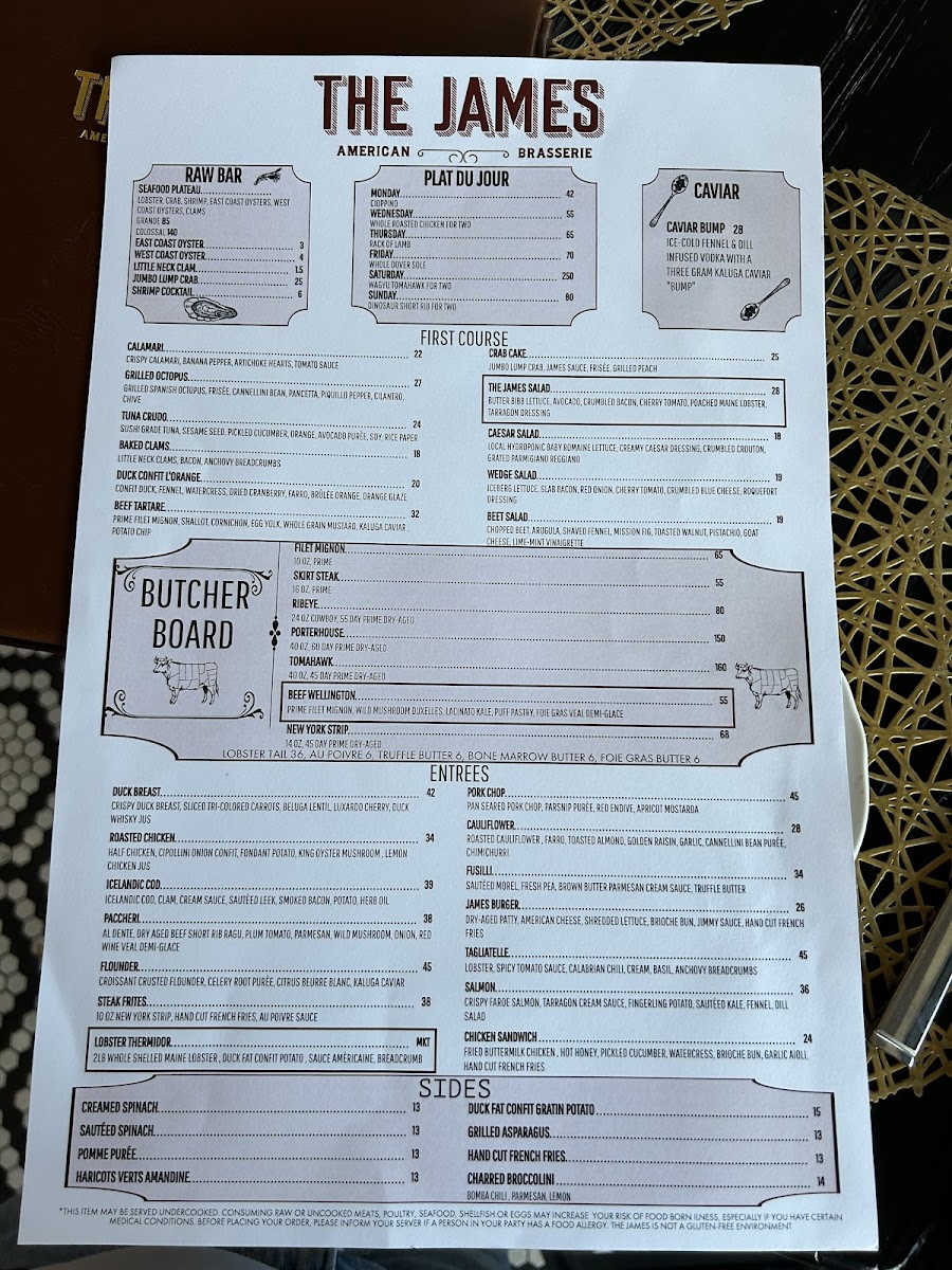 Welcome to THE JAMES - Babylon, an exquisite dining experience located at 21 Fire Island Ave in Babylon, NY. This notable establishment offers a menu that captivates the palate with its exceptional offerings. Start your culinary journey with tantalizing starters like Grilled Octopus ($27) or Baked Clams ($18). The main courses shine with dishes such as Duck Cassoulet ($20) and Beef Tartare ($32), highlighting both quality and creativity. For those looking to elevate their meal, consider indulging in a Caviar Bump ($28). The ambiance is complemented by an impressive selection of Decadent Pours, featuring fine spirits like The Macallan 18 ($65) and Clase Azul Reposado ($45). Each dish is crafted with care, promising an unforgettable experience that marries flavor and presentation. Come discover why THE JAMES - Babylon is the talk of the town!